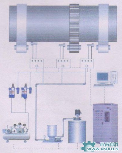 在油氣潤滑系統中,油泵輸出的油品,在管路中運行,直接噴射到潤滑點。這樣的潤滑系統,在油品輸送過程中,油品不予環境介質接觸,保證了油品的清潔度和高性能;一個供油系統,可以供幾十個甚至上百個潤滑點,并保證對各個潤滑點按時供給必要量的油品。目前,淄博九洲潤滑科技有限公司(及西南潤滑分公司)、北京中冶等單位將PLC(可編程序控制器)和計算機應用于潤滑系統,實現了潤滑系統的智能化(見圖4)。為生產系統智能化、長壽命創造了有利條件。